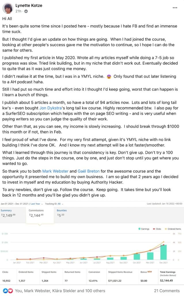RJ started his site before joining Authority Hacker Pro and did well for a while but in early 2020, his site got hit by successive algorithm updates. That’s when he decided to join Authority Hacker.