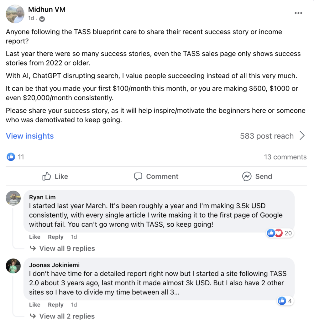 At first, he used the methods taught inside the training to grow his organic traffic and editorial team, which allowed him to quit his job and work full-time on his project.