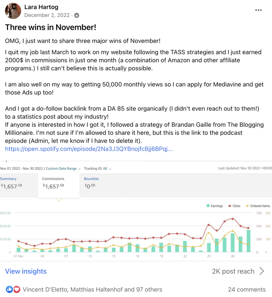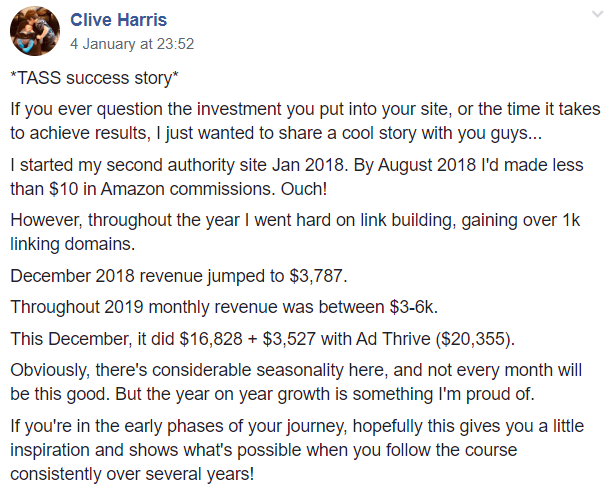 Nowadays, Chris’ site ranges between $15,000 and $30,000 in revenue per month, and he couldn’t be happier about his decision to join the training.