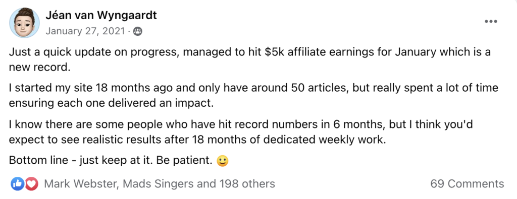 David is an ambitious guy. From day 1, his goal was to reach 5-figure per month with his Authority Site System website.