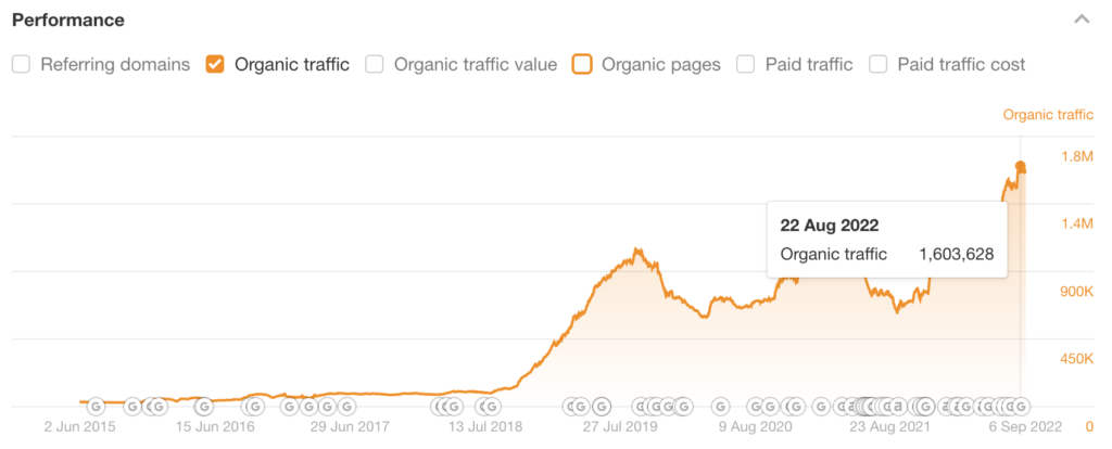 This system allowed him to take over his competitors and become the world’s #1 photography education site in search traffic in a matter of months, with over 1.6 million monthly organic visitors, according to Ahrefs.