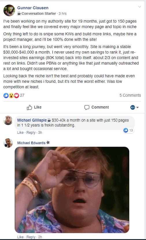 But joining The Authority Site System allowed him to 10x his results by learning about building systems, processes, and more efficient ways to create content and link building.
