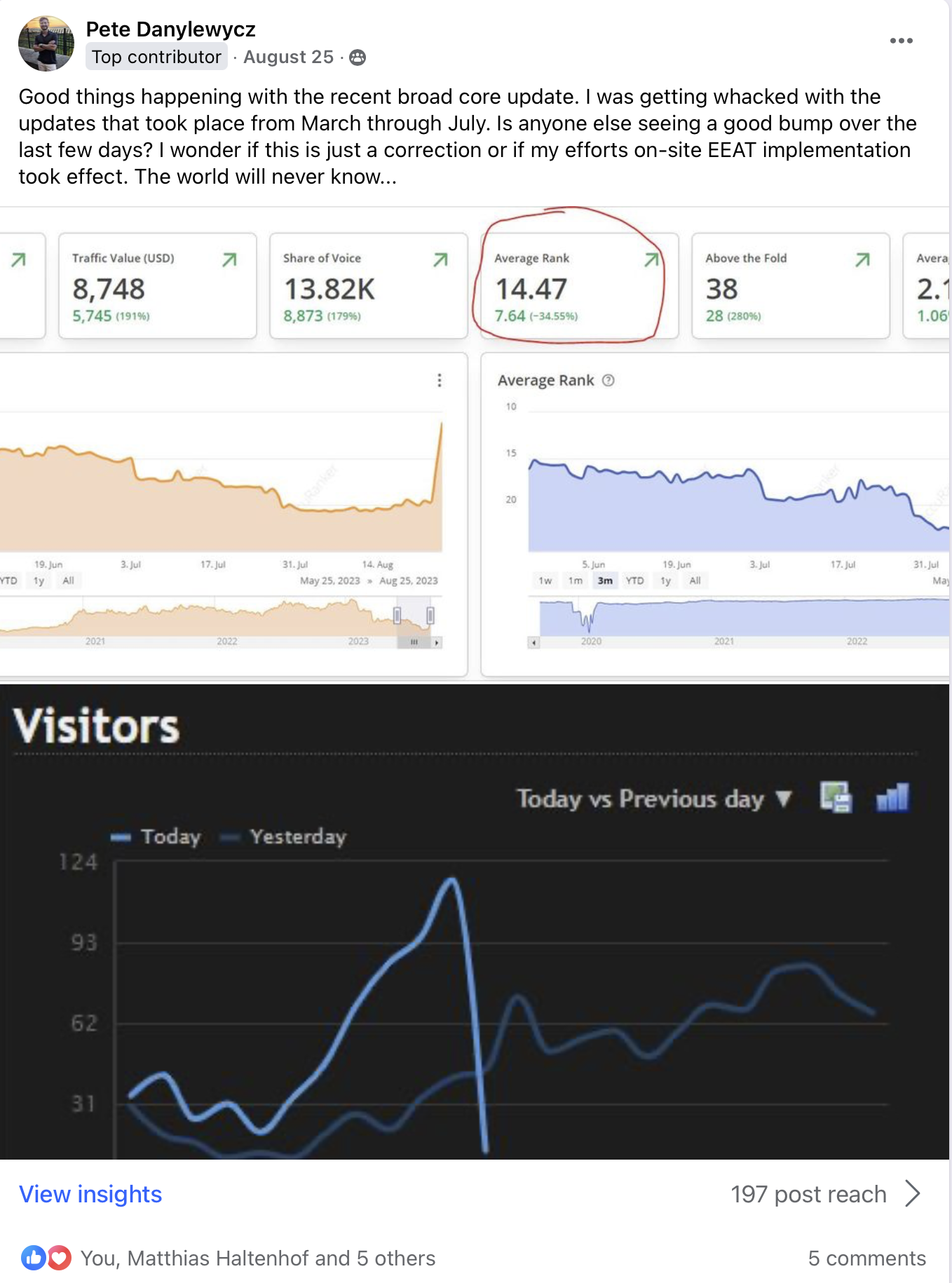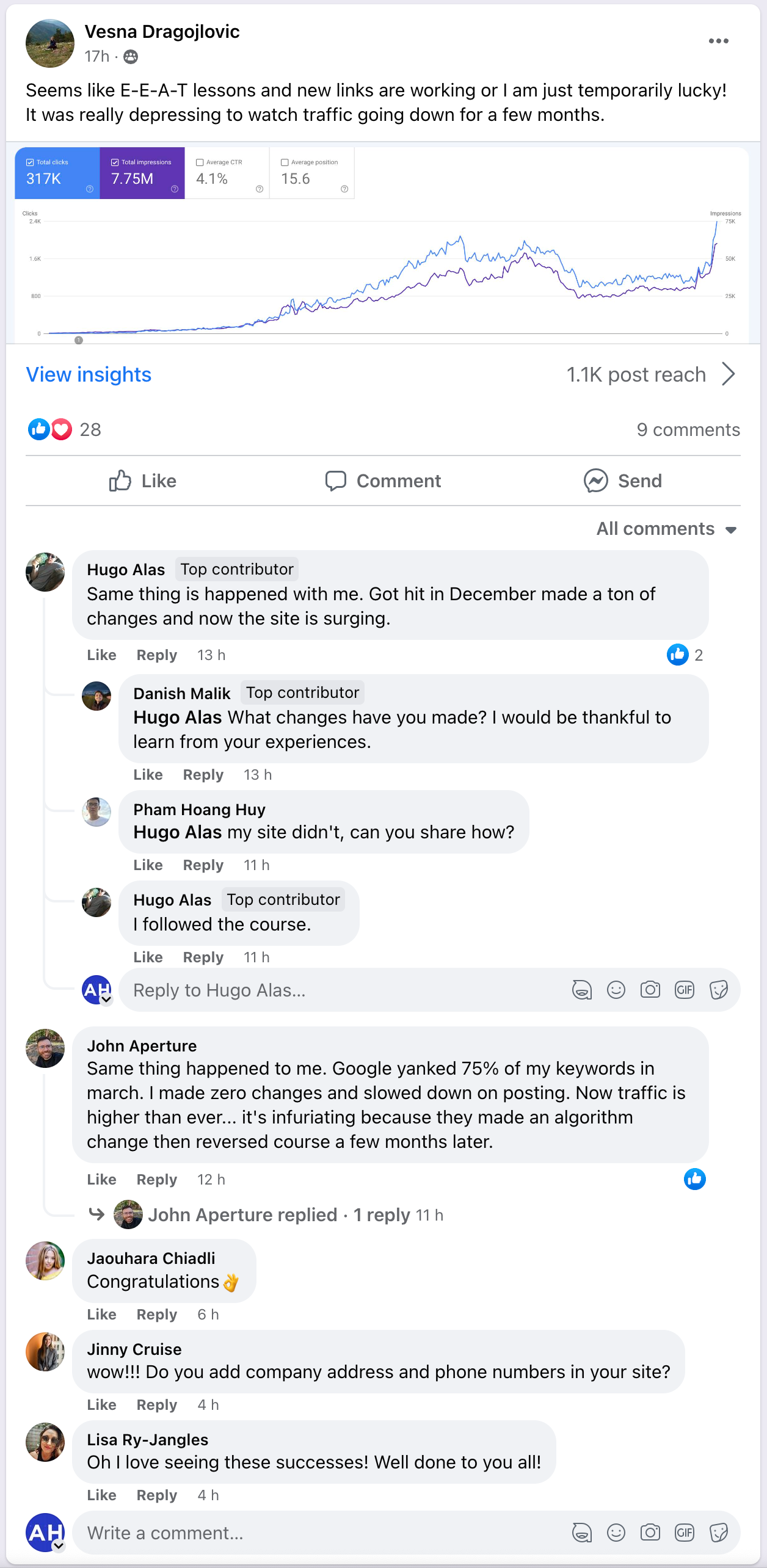 Through a lot of effort, his site started recovering and is now at an all-time high in traffic after the recent Helpful Content Update.