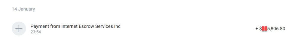 After it was all transferred, the escrow was released. FE get their cut and we get the remaining minus our share of the escrow fees.