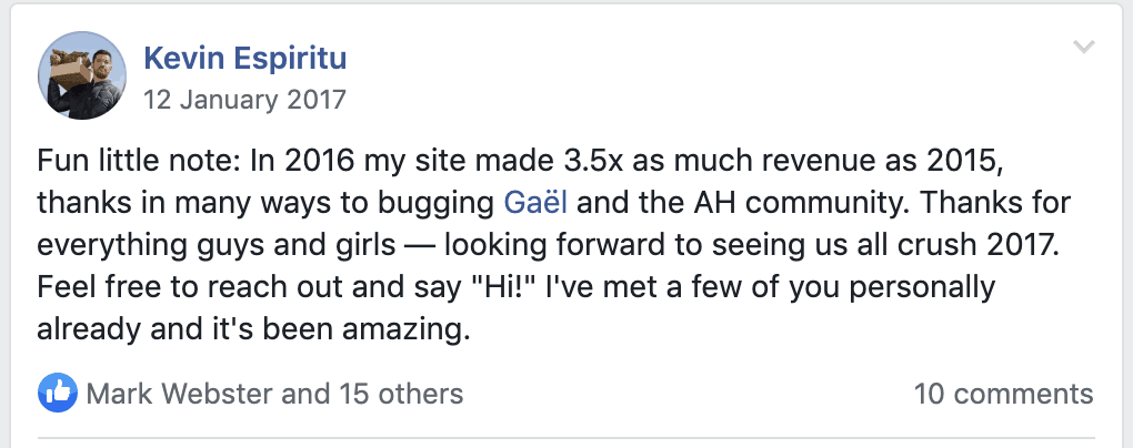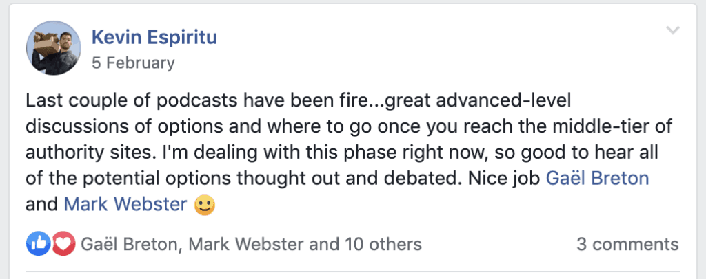 Something that’s important to point out here is that Kevin was and is an important part of the Authority Hacker Pro community.