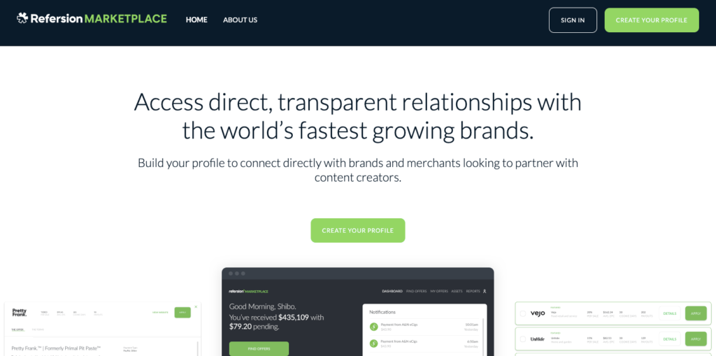 Refersion Marketplace is an affiliate network comprising many influencers and other affiliate marketers who are actively searching for partnerships with merchants in four main niches: