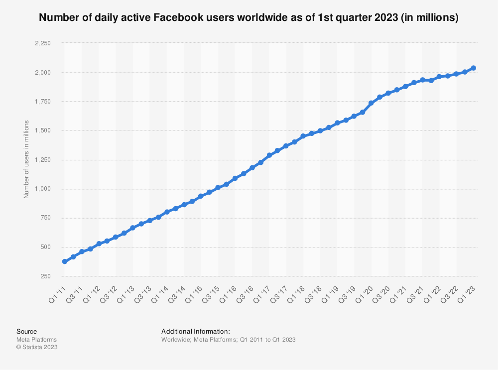 While it’s not as popular as it used to be (especially with younger audiences), Facebook still has a huge and highly active user base.
