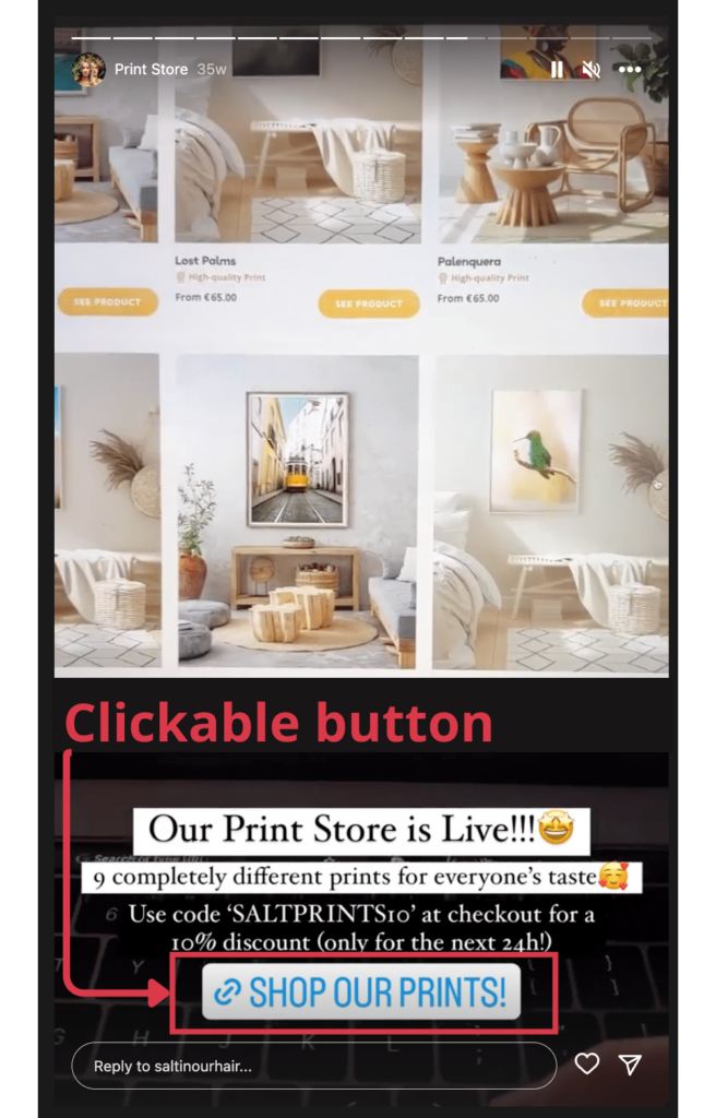 This brings us to the big downside of Instagram affiliate marketing: adding affiliate links. Unfortunately, you can’t paste clickable links into post descriptions or comments. But you can add them as clickable buttons within Instagram Stories…