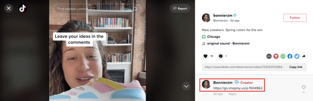 - Add (unclickable) links to your content description or comments, like TikTok creator Bonnierzm does here:
