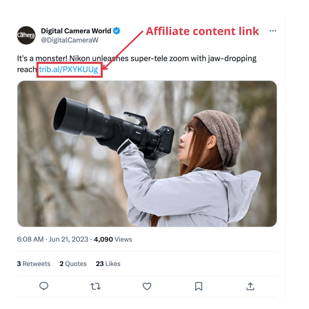 The best thing about Twitter affiliate marketing is that you can add your affiliate link anywhere. So there’s no need to mess around with bridge pages or links in bio, making it easier to generate clicks and commissions.