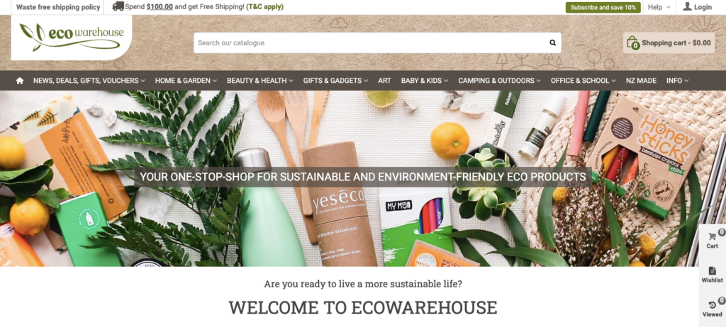 EcoWarehouse is a one-stop shop for sustainable and eco-friendly items across various categories, from health and beauty products to gadgets, art, and camping gear.