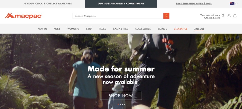 Macpac sells products for mountain climbers, trampers, campers, and anyone else who loves the great outdoors. It has a 60-day returns policy and offers free shipping on orders over NZ$100.