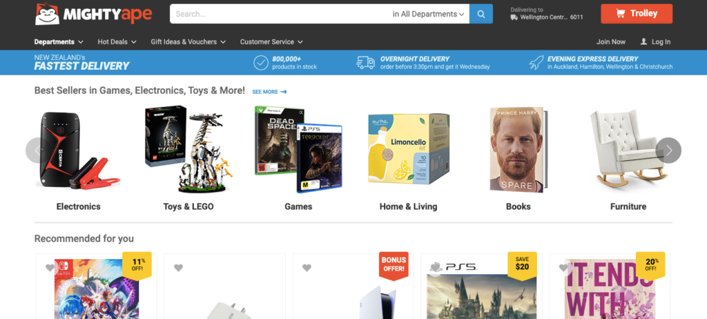 Mighty Ape is a New Zealand-based ecommerce store owned by Australian retail and services company Kogan.com.