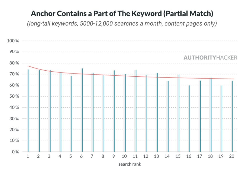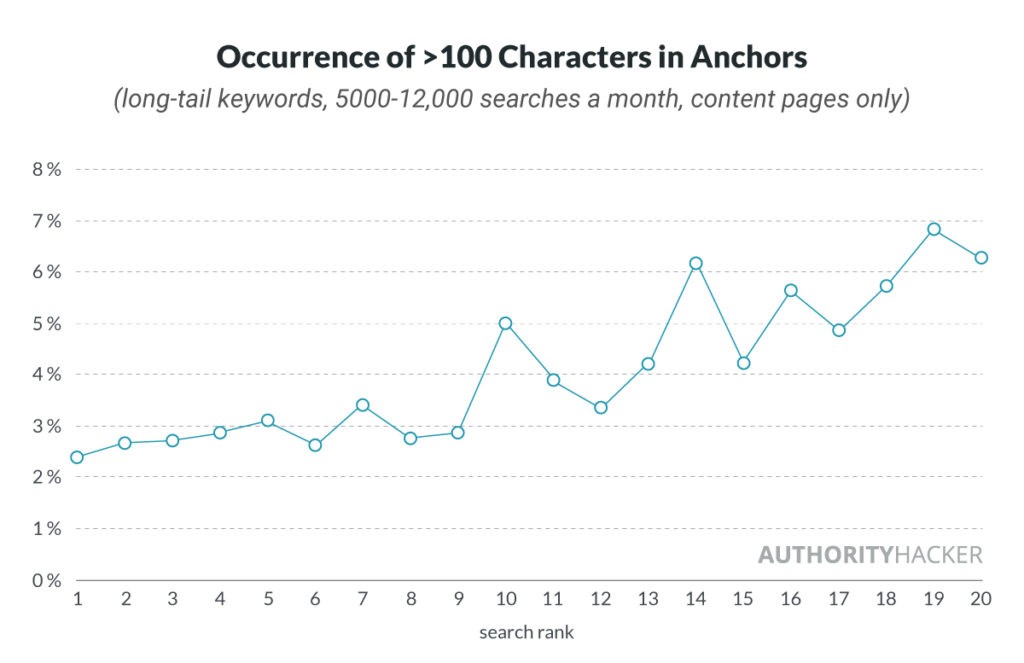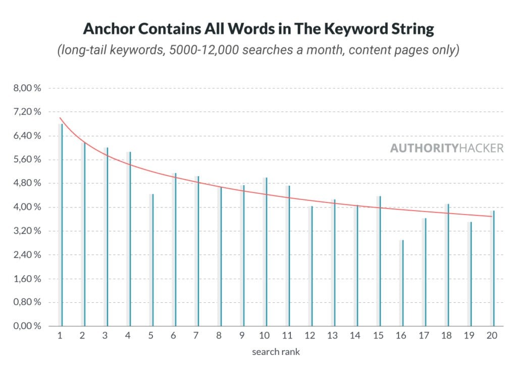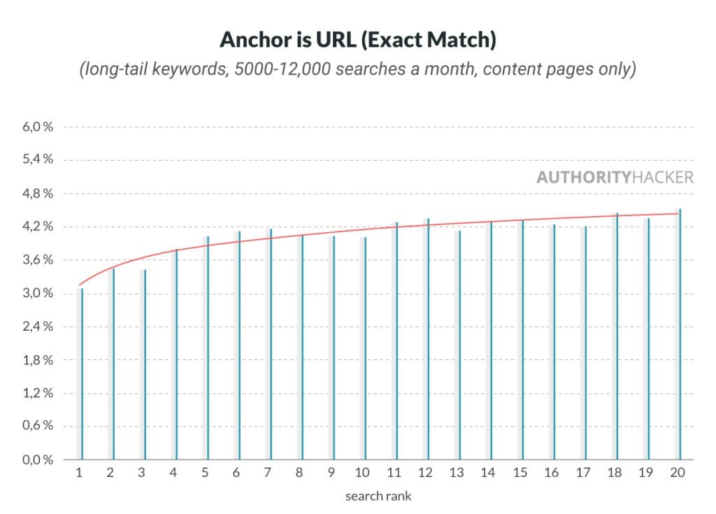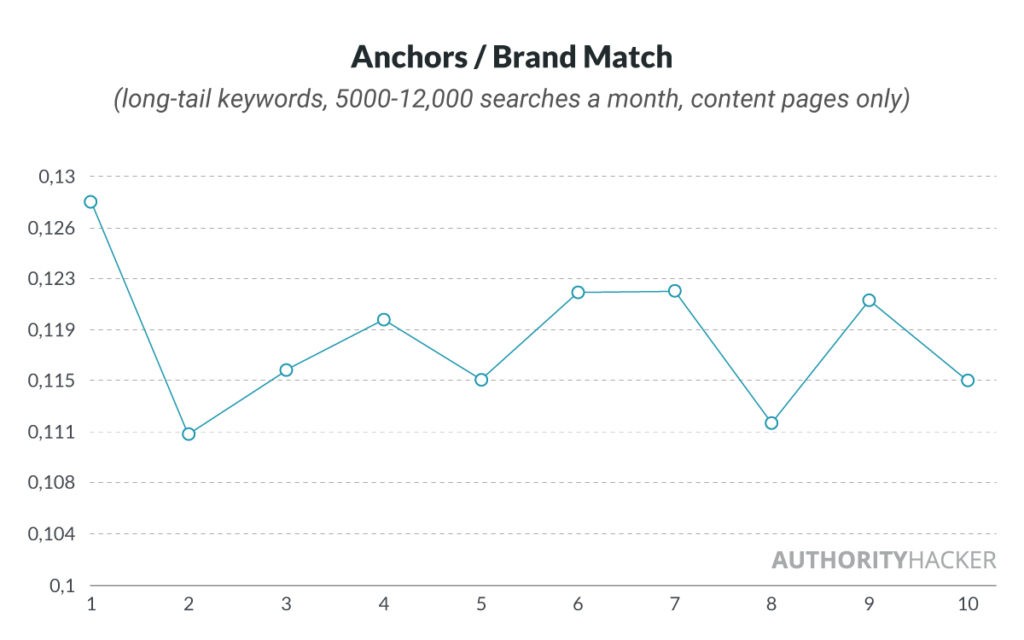 As you can see, the higher the rank the more unique backlink anchors the page shows. That’s not surprising because when you have more backlinks, you should get more variety in anchors too.