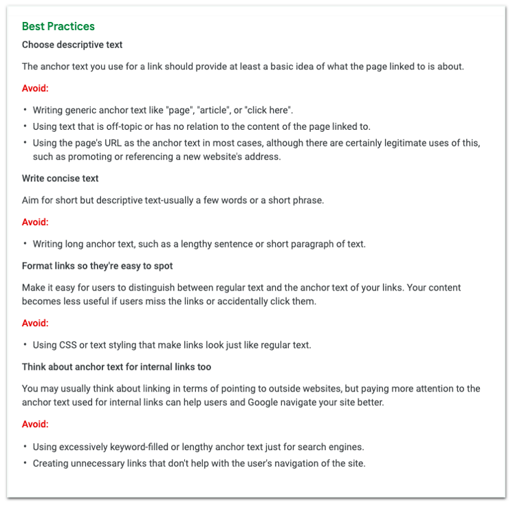 Google provides some general guidelines on the do’s and don’ts of anchor text optimization.