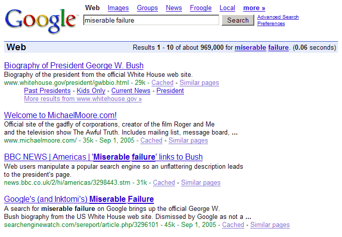 If you spammed the web with tons of links, each with the same anchor, exactly matching your campaign’s keyword, you could have hit the top rank or pulled a practical joke, like this one:
