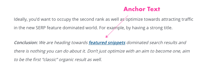 If people click on an anchor, it must mean that it’s effective in providing context. I also noticed that quite a few anchors contain the word “click here”, “read more”, “visit this link”, and so on.