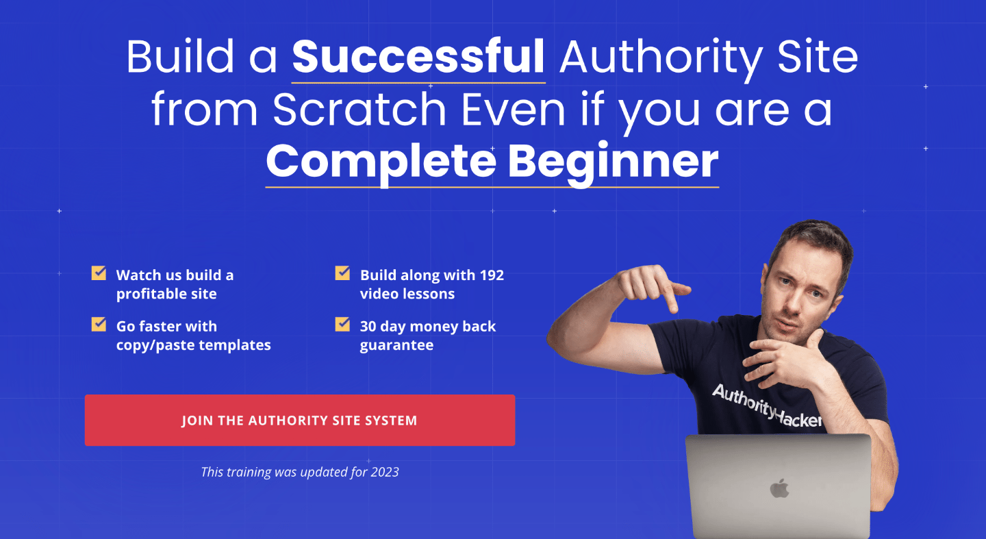 Our Authority Site System training alone has nearly 200 videos, and that’s only our beginner program. It doesn’t even include all of the advanced training modules in our flagship Authority Hacker Pro program.